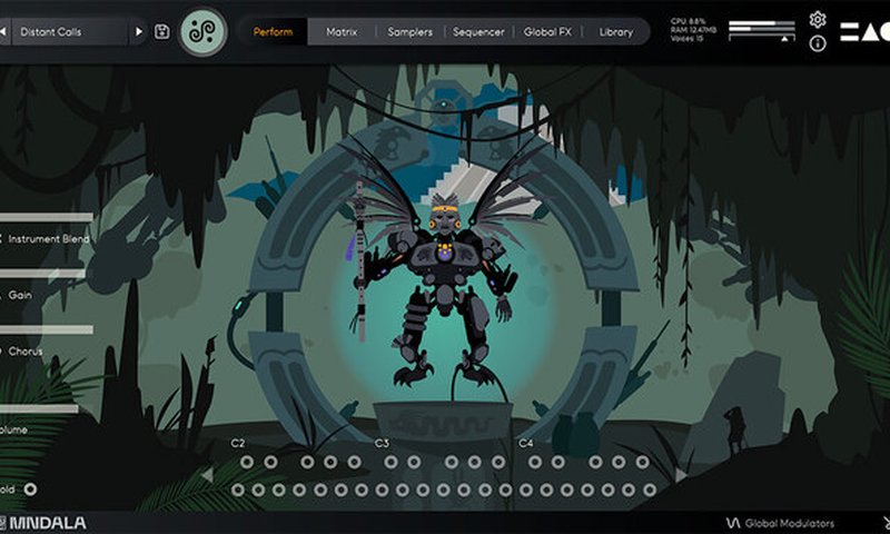 ギャラリーページ(「Gallery 」ボタンでアクセス)では、インストールされているAddictive Keysの楽器やオンラインショップで購入可能な楽器に関する一般的な情報をご覧いただけます。ギャラリーページの下部には、現在選択されている楽器で利用可能なExploreMapのサムネイルが表示されます。