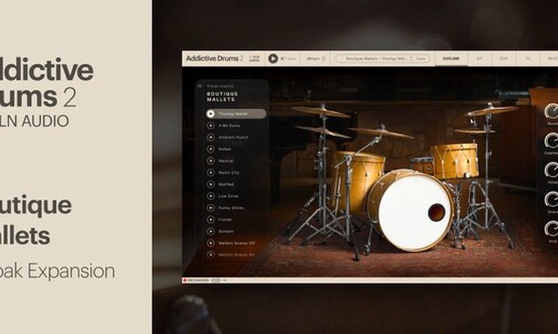 Boutique MalletsはAddictive Drums 2向けのADpak拡張です。フェルトマレットとスティック両方で演奏された手作りのWaccoドラムを、Soundtrade Studiosのビッグルームで温かく有機的かつ映画的な響きに録音。