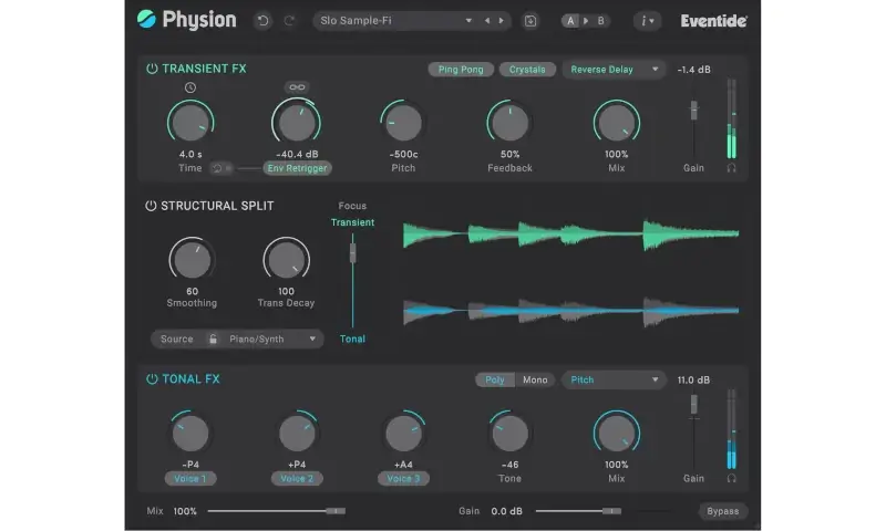 • Eventideの改良されたStructural Split™技術を使用してTransientおよびTonalエフェクトを個別に処理