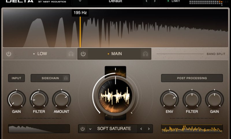 Driveコントロールでパーカッションループをパキッとさせたり、シンセをミックス上で際立たせたりできます。控えめなサチュレーションから極端なオーバードライブまで信号を押し込めます。ソフト、ミディアム、ハードの3種類のディストーションモードを切り替え可能です。