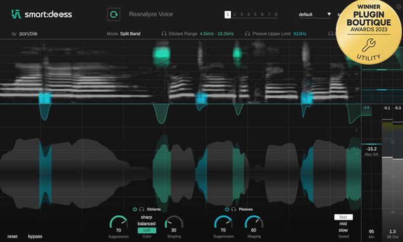 他のディーエッサーが単に音量を下げるだけなのに対して、smart:deess はそれ以上に踏み込んで、より自然でバランスの良い音を作り出します。